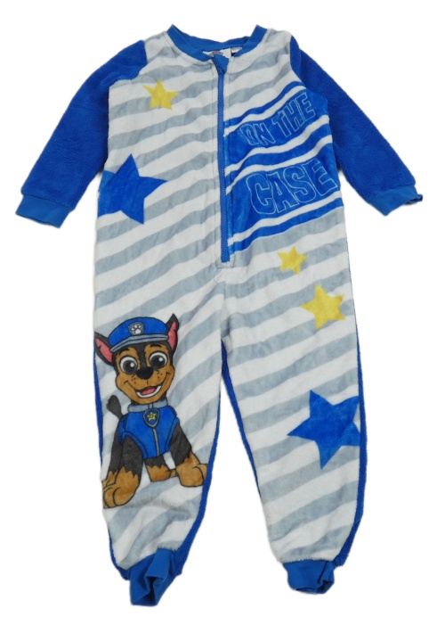 Bielo-sivo-zafírová pruhovaná plyšová kombinéza s PAW PATROL - Chase nickelodeon