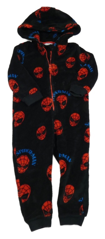 Čierna chlpatá kombinéza so Spidermanem a kapucňou M&S