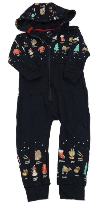Tmavomodrá tepláková kombinéza s vánočním motívom a kapucňou Leigh Tucker