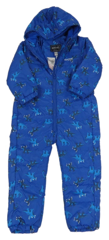 Zafírová prešívaná šušťáková funkčná zimná kombinéza s dinosaurami a kapucňou REGATTA
