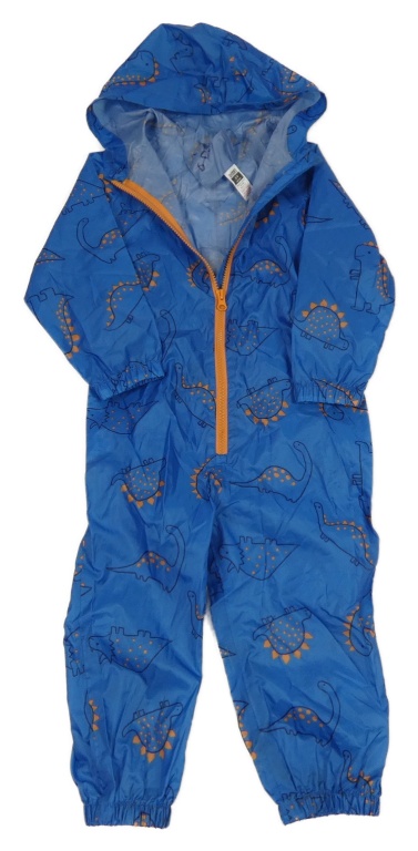 Modrá šušťáková nepromokavá kombinéza s dinosaurami a kapucňou Dunnes