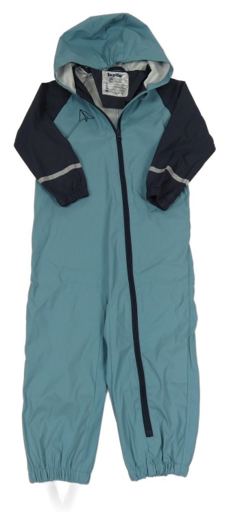Modrošedo-tmavomodrá nepromokavá kombinéza s papírovou vlaštovkou a kapucňou lupilu