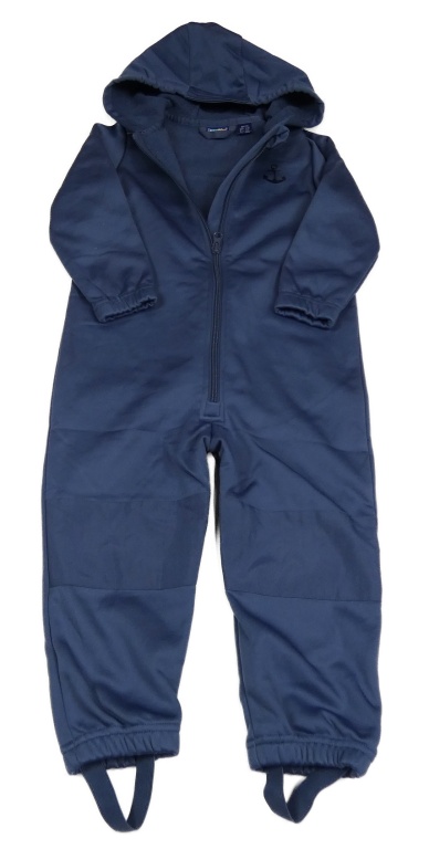 Tmavomodrá softshellová kombinéza s kotvou a kapucňou lupilu
