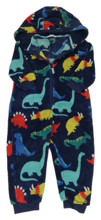 Tmavomodro-farebná chlpatá kombinéza s dinosaurami a kapucňou M&S
