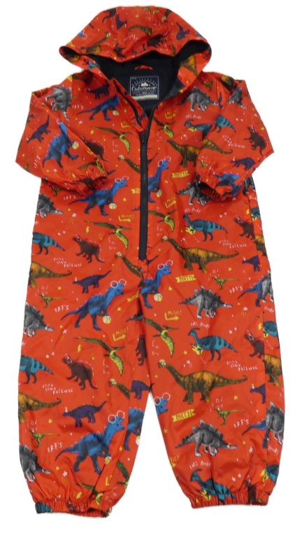 Červená šušťáková podšitá kombinéza s dinosaurami a kapucňou George