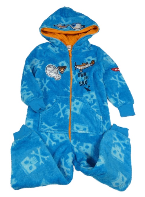 Modrá vzorovaná chlpatá kombinéza s kapucí - Lietadla Disney