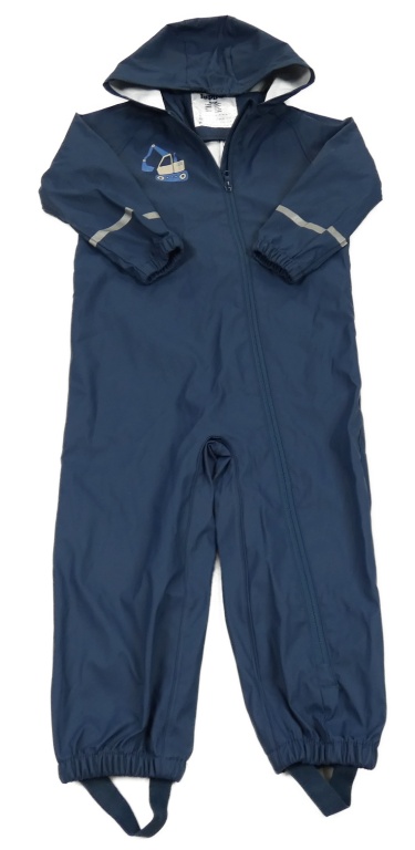 Tmavomodrá nepromokavá kombinéza s buldozerem a kapucňou lupilu