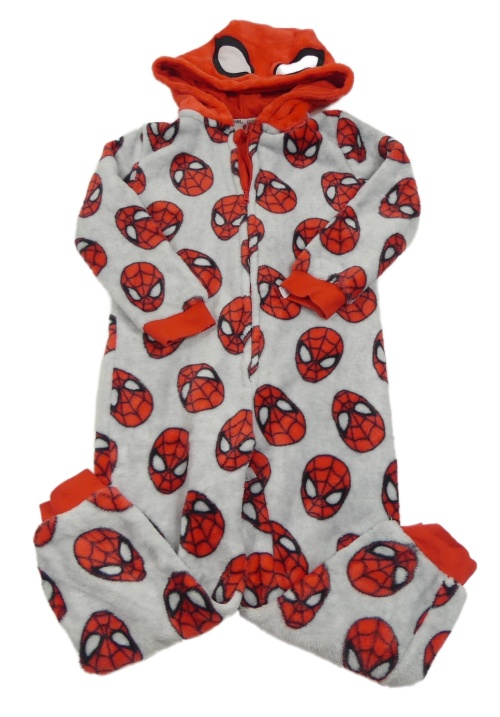 Svetlošedá -červená plyšová kombinéza so Spider-many a kapucňou MARVEL