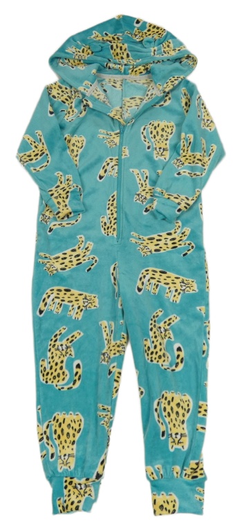 Azurová plyšová kombinéza s leopardmi a kapucňou TU