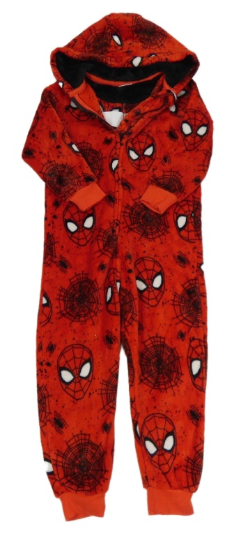 Červená chlpatá kombinéza so Spidermany a kapucňou Marvel