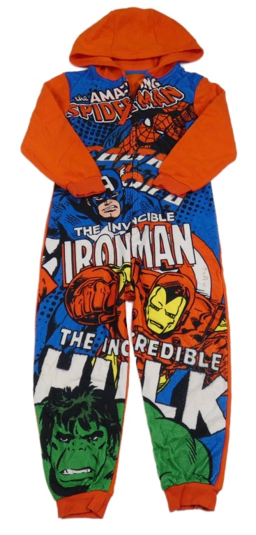 Červená chlpatá kombinéza so Spidermanem a kapucňou M&S