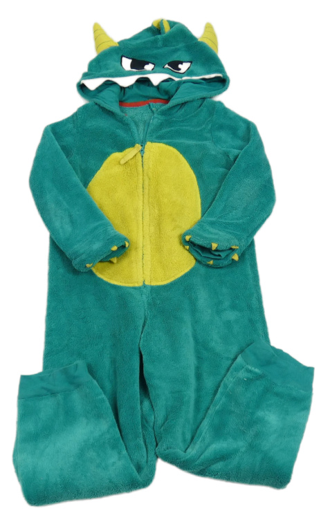 Modrozeleno-žltá plyšová kombinéza s kapucňou a ostny - príšerka M&S