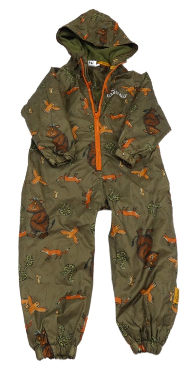 Khaki šušťáková jarná kombinéza s Gruffalem a kapucňou