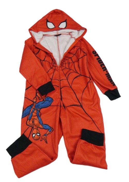 Červená fleecová kombinéza so Spidermanem a kapucňou