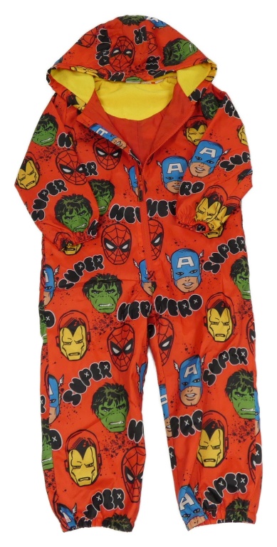 Červená šušťáková jarná kombinéza s hrdinami a kapucňou George