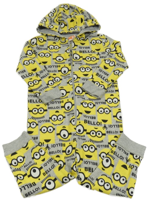 Sivo-žltá vzorovaná tepláková kombinéza s Mimoni a kapucňou