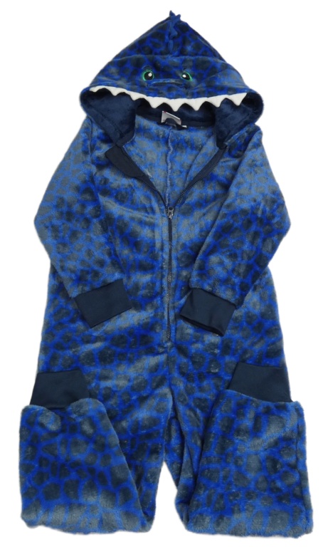 Modro-sivá vzorovaná plyšová kombinéza s kapucí - dino