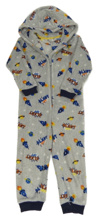 Sivá chlpatá kombinéza s raketami a kapucňou