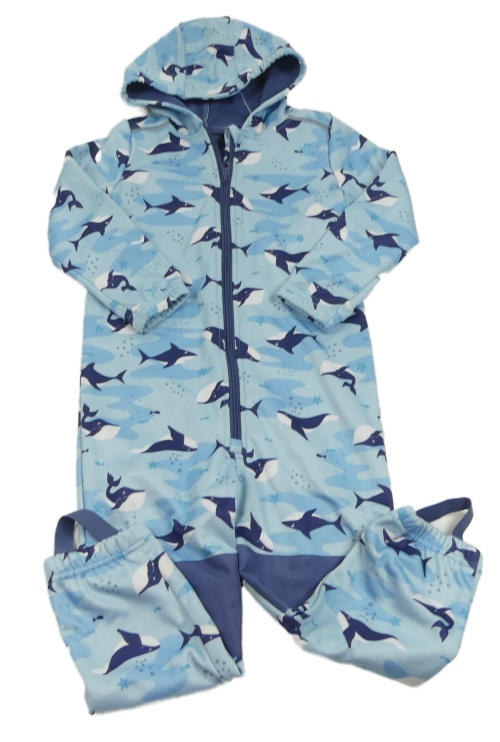 Svetlomodrá softshellová kombinéza s velrybami a kapucňou Lupilu
