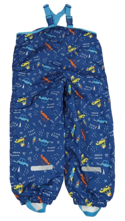 Modré šušťákové podšité na traké nohavice s autami Impidimpi