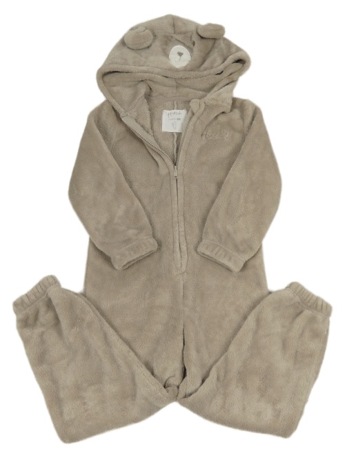 Svetlohnedá chlpatá kombinéza s kapucí - medvěď F&F