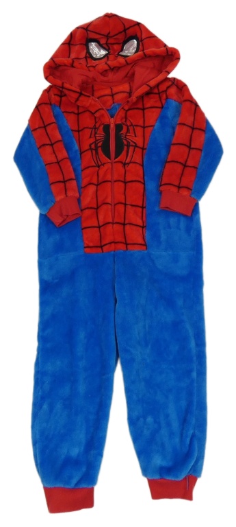 Modro-červená chlpatá kombinéza s pavoukem a kapucí - Spiderman