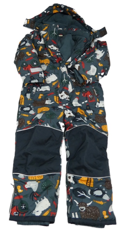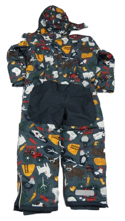 Sivá šušťáková zimná kombinéza so zvieratkami s odopínacíá kapucňou