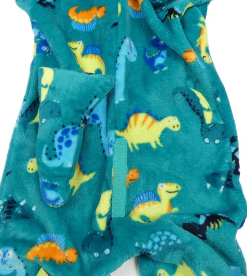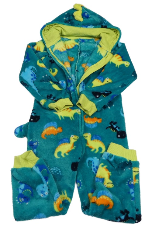 Modrozelená chlpatá kombinéza s dinosaurami a kapucňou Nutmeg