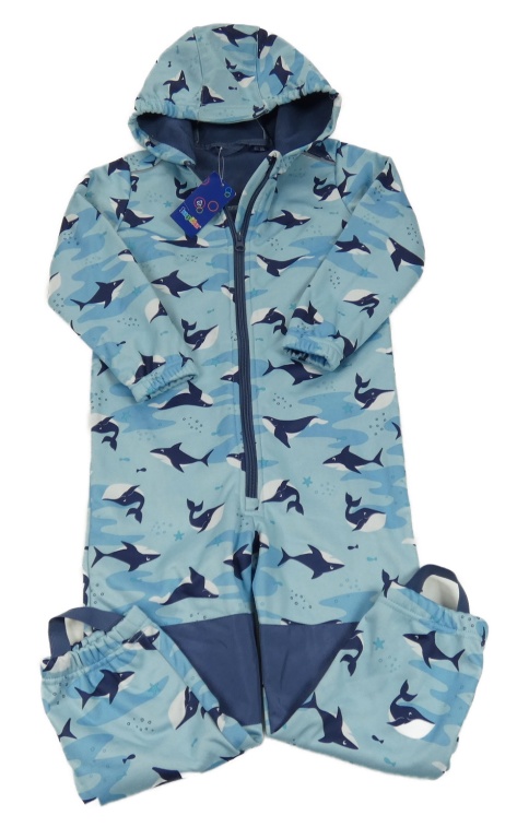 Nové - Svetlomodrá softshellová kombinéza s velrybami a kapucňou Lupilu