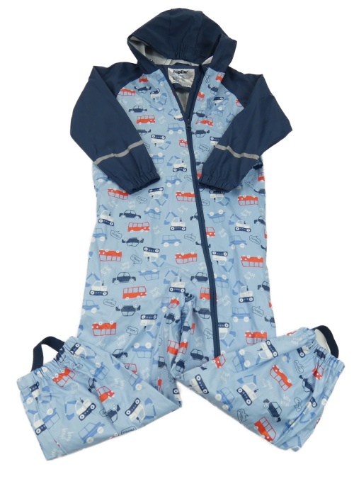 Modro-tmavomodrá nepromokavá kombinéza s autami a kapucňou Lupilu