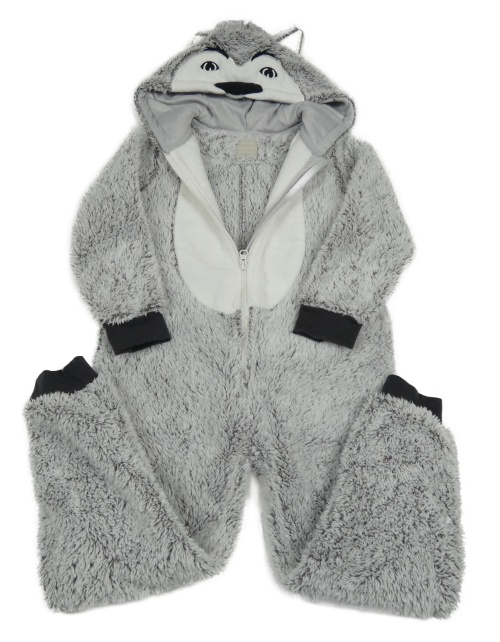 Svetlošedá -biela chlpatá kombinéza s kapucí - vlk John Lewis