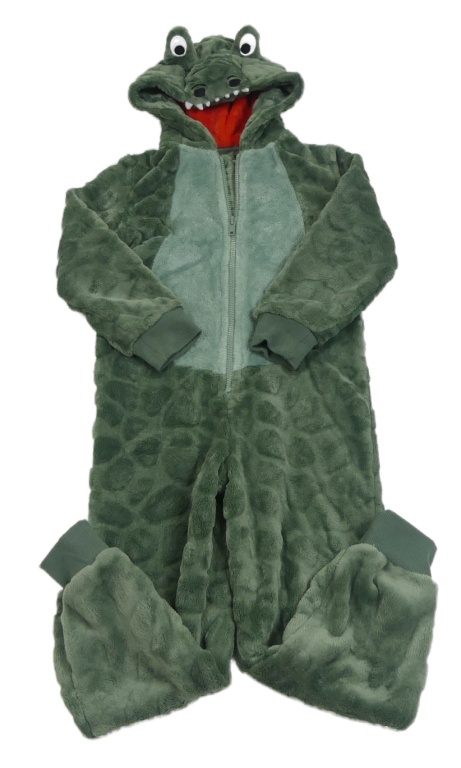 Khaki chlpatá kombinéza s kapucí - dinosaurus F&F