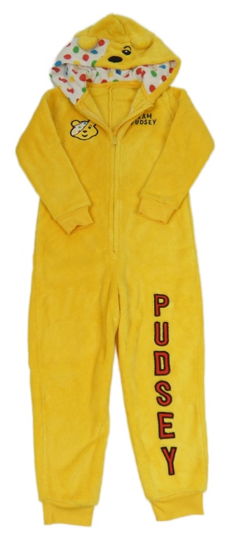 Žltá plyšová kombinéza s Pudsey a kapucňou George