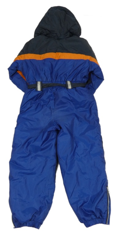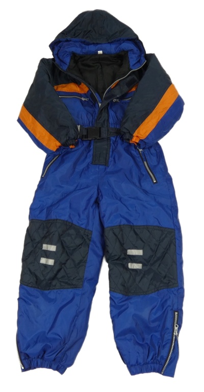 Kobaltově modro-tmavomodro-oranžová šušťáková zimná kombinéza s kapucňou