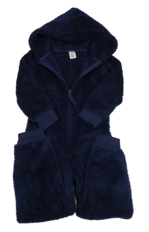 Tmavomodrá chlpatá kombinéza s kapucňou Peacocks