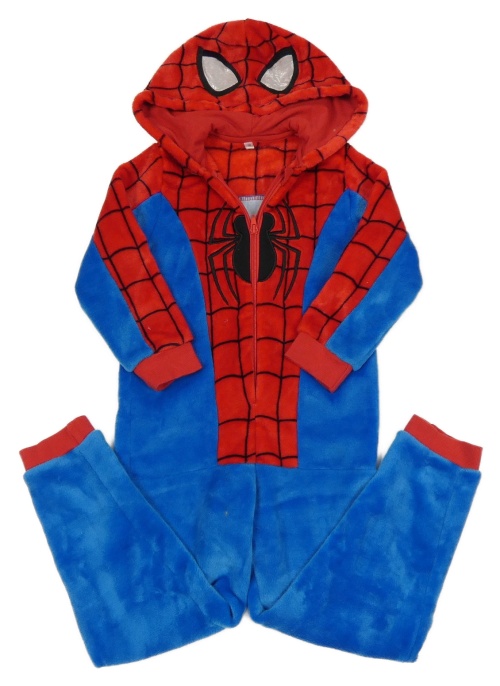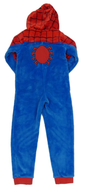 Modro-červená plyšová kombinéza s pavoukem a kapucí - Spider-man