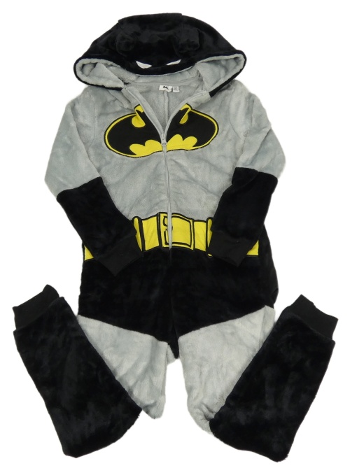 Sivo-čierna plyšová kombinéza s kapucňou a pláštěm - Batman