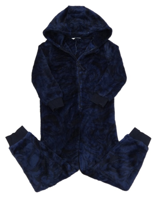 Tmavomodro-čierna vzorovaná plyšová kombinéza s kapucňou M&S