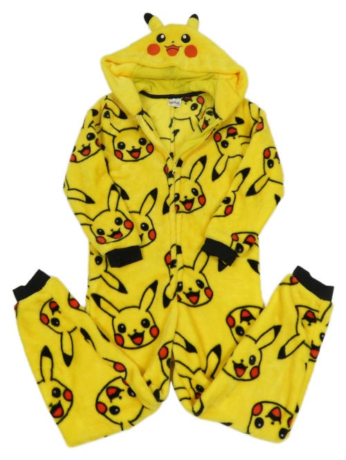 Žltá chlpatá kombinéza a Pikachu a kapucňou