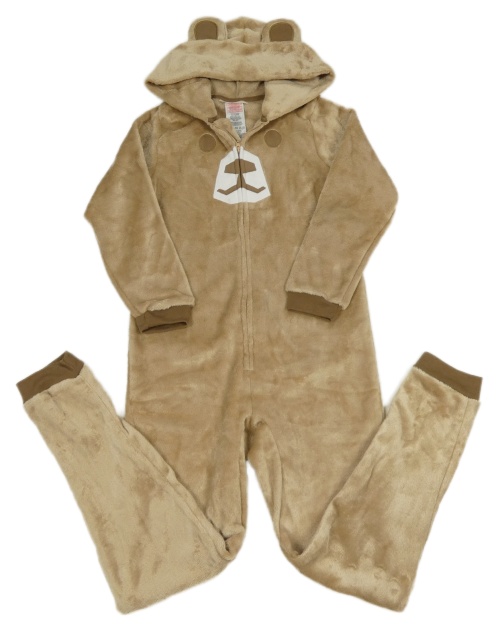 Hnedá chlpatá kombinéza s medvěďom a kapucňou