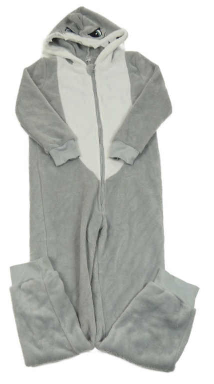 Sivo-biela chlpatá kombinéza s kapucí - žralok Zeeman