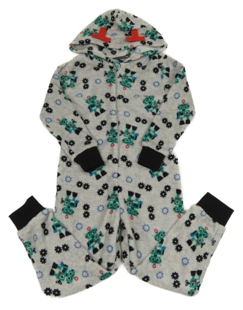 Sivá chlpatá kombinéza s robotmi s kapucňou