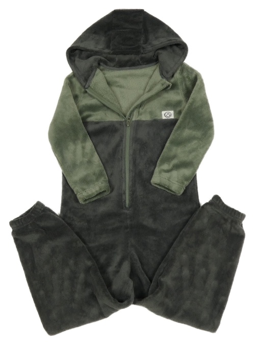Kaki-antracitová plyšová kombinéza s kapucňou George