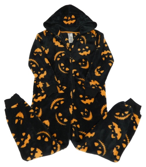 Čierna plyšová kombinéza s dýněmi a kapucňou L&D