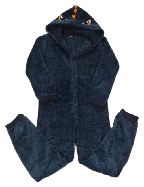 Tmavomodrá chlpatá kombinéza s kapucňou s očima a ostny