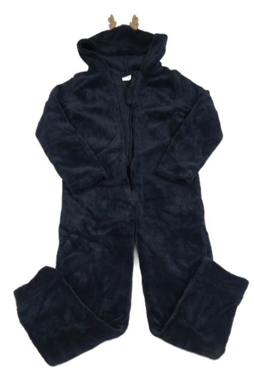 Tmavomodrá chlpatá kombinéza s kapucňou