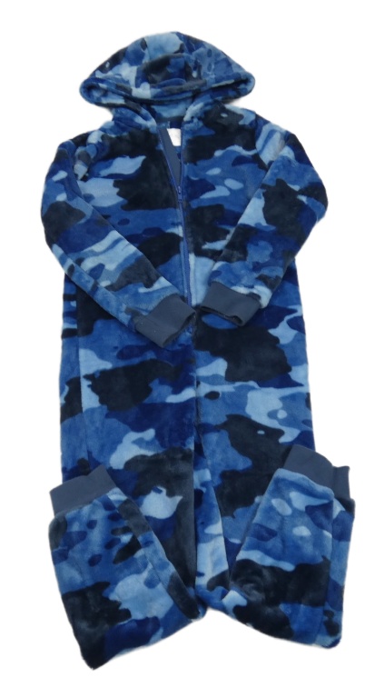 Modro-tmavomodrá army chlpatá kombinéza s kapucňou F&F
