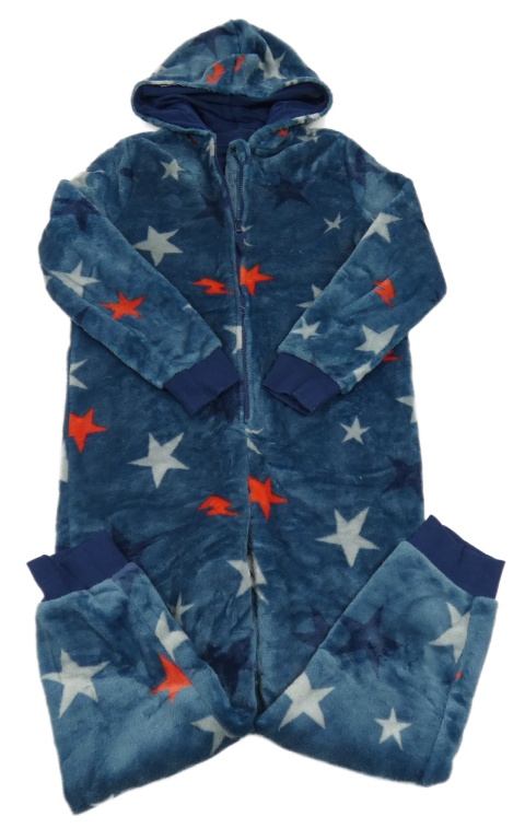 Tmavomodrá plyšová kombinéza s hviezdami a kapucňou M&S