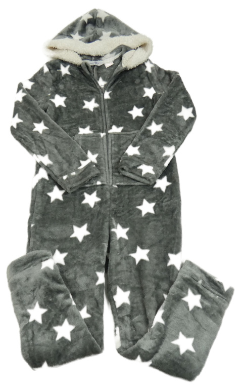 Sivá plyšová kombinéza s hviezdami a kapucňou