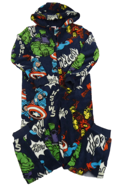 Tmavomodrá chlpatá kombinéza s hrdinami a kapucňou Marvel